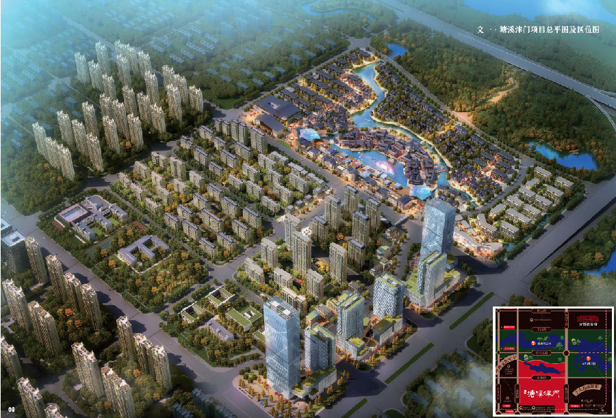 2016年,文一地产以2400万元/亩,总价76.89亿元竞得滨湖区BH2015-09号地块,命名“文一·塘溪津门”。塘溪津门总占地约1080亩,总建面约135万平方米,总投资逾150亿元,是文一地产的扛鼎之作。项目规划的产品类型十分丰富,涵盖高端精品住宅高层、跃层、花园洋房、滨水别墅,云端商务办公集群以及特色文化旅游街区等,矢志打造为环巢湖旅游新名片、安徽城市会客厅,将皖人历史风情与城市记忆融入现代生活的融合体。