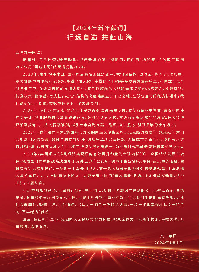 【文一集团】2024年新年献词|行远自迩 共赴山海