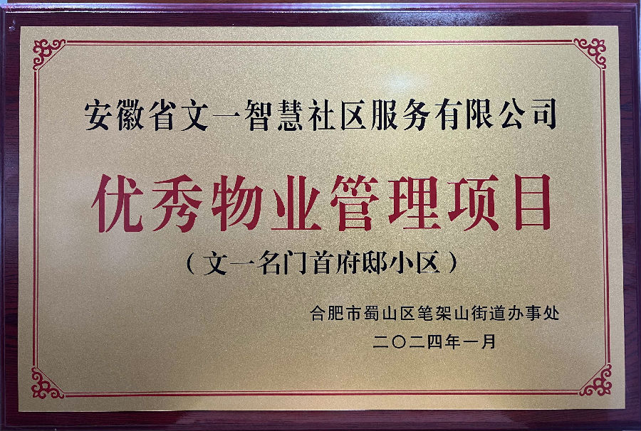 2月1日上午,合肥市蜀山区笔架山街道党工委、办事处组织开展2023年度物业管理工作总结表彰大会。文一·名门首府(备案名:名门首府邸)获评优秀物业管理项目。