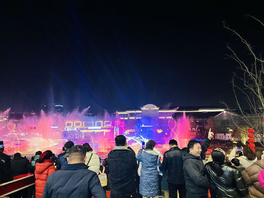 看过很多场津门水秀,依然会被新春定制的水幕电影震撼。很多游客早早地来到水秀剧场,占据最佳观赏位置,准备好手机,准备录视频打卡。伴随一曲曲耳熟能详的《恭喜发财》《龙的传人》《欢乐中国年》歌声响起,光影不断变幻着,水幕翩然起舞,时而悠扬时而激昂,将新春的热烈融入水的光波里,为龙年新春舞动一幕璀璨星辉。