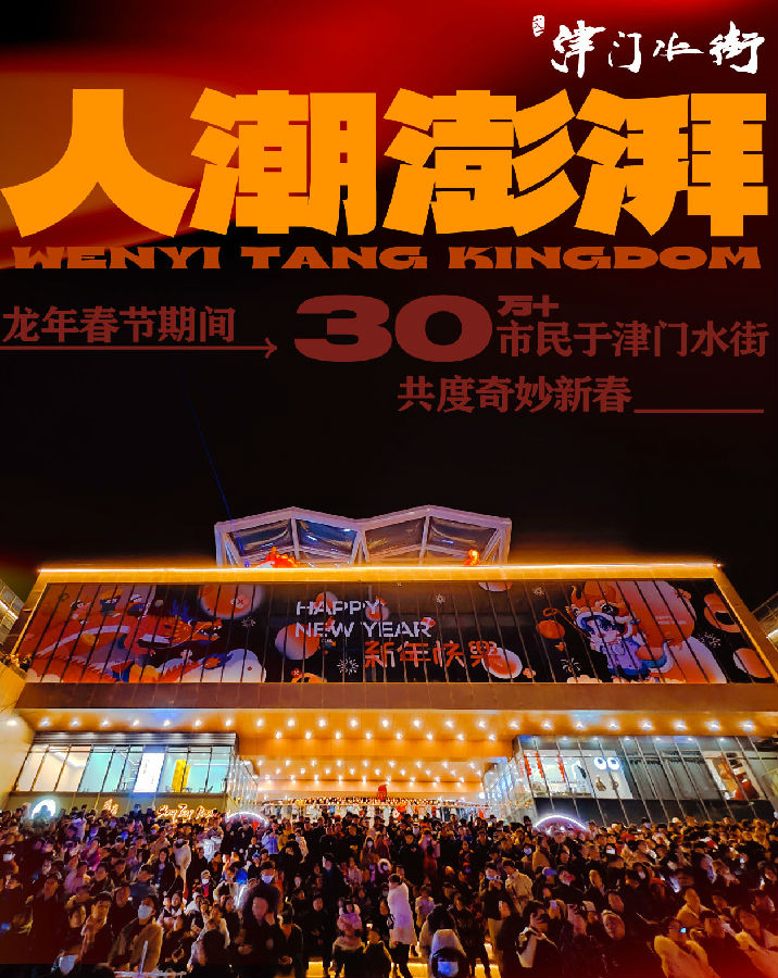 这个龙年,合肥刮起了一阵新风潮——到文一·津门水街逛一逛,看新春定制水秀,赏火龙飞天、非遗打铁花,听黄梅戏,看民俗传人耍绝活。正月初一至初八,津门水街累计接待游客30W+人次,跻身合肥文旅街区客流榜前五。