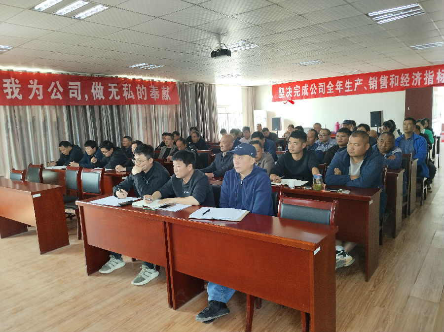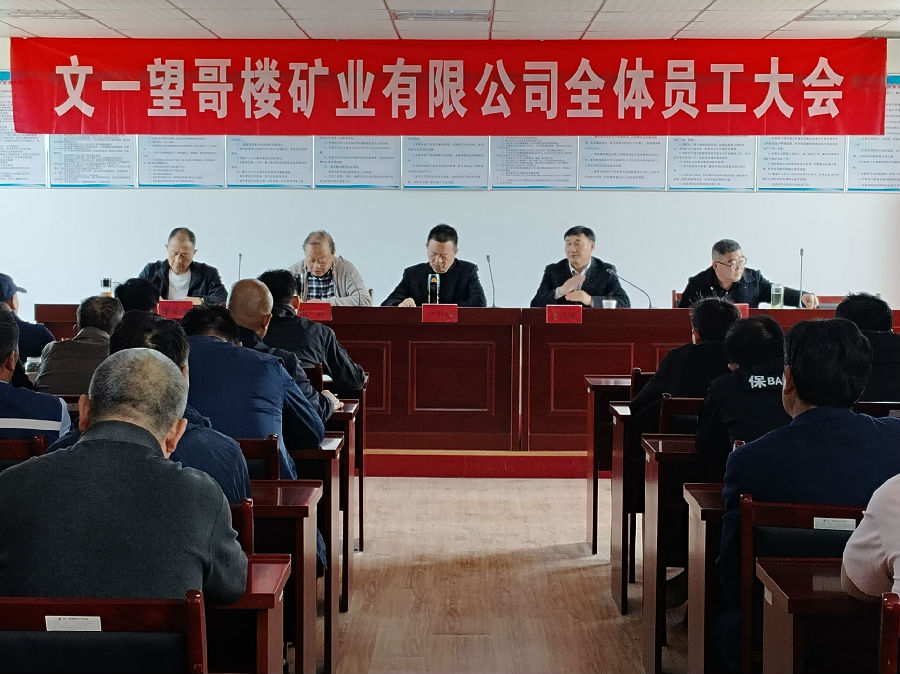 4月9日,文一望哥楼矿业有限公司召开了全体员工大会。会议由副矿长张洋主持,矿长李从刚、副矿长武孝仕、销售经理程申春、总包单位缪成虎发表讲话,集团执行总裁宁世明到会指导。