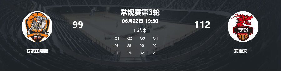 开局两队没有试探便直接交火。杰克逊一记四分位长传找到杨文博,后者上篮命中,安徽文一开局6:6和对手打平。石家庄队进攻提速,主打安徽文一立足未稳的空隙。安徽文一这边,达卡里优势明显,在内线予取予求,单节便得到11分。攻防转换阶段,杰克逊侧翼三分命中目标,安徽文一反超1分。本节后段,两队互飙三分。祖布西奇,杨文博和薛傅文纷纷开火。首节战罢,安徽文一31-26领先对手。