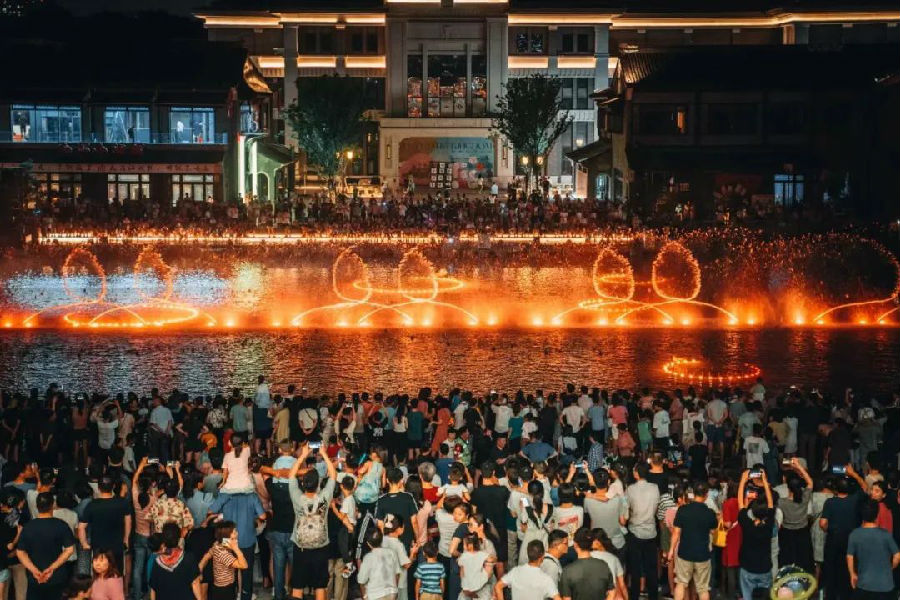 作为文一集团着力发展特色文旅产业的战略性作品,津门水街以长三角风雅宋水乡微度假街区为定位,将安徽本土文化与皖人文化记忆融入现代生活的文化旅游当中,不仅有“院落式+街巷”格局的宋代古街,还有天幕长廊、津门水秀等科技潮玩中的新时尚景点。