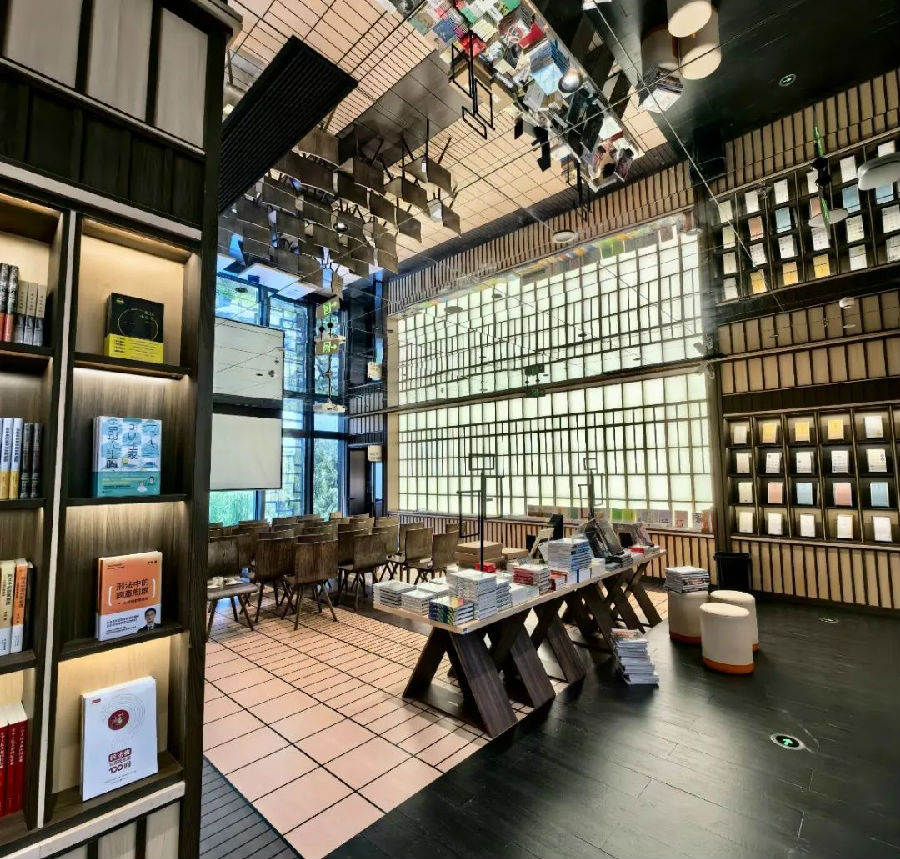 最引人瞩目的打卡点,便是店内独具匠心的“四步通天”——同时规划出4条步梯,均可通往二楼。即便身处同一空间内,每条步梯之上、不同角度之间的景观却截然不同,营造出“书山有路”的氛围感,也成为“横看成岭侧成峰”的错落之美。将地貌形意与中式韵味相结合,营造仁者乐山的意韵,意在中华文化的主流回归。