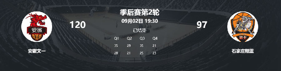 9月2日晚,继续坐镇主场的安徽文一迎来与石家庄翔蓝的半决赛第二场交锋。在达卡里·约翰逊两双数据的领衔下,12名球员全部得分的安徽文一全场始终保持领先,以120-97大胜石家庄队,系列赛大比分2-0领先对手,手握半决赛赛点!