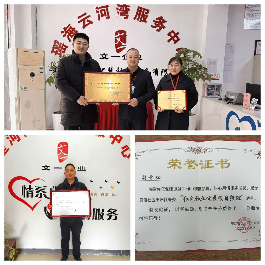岁末年初,文一瑶海新站服务下辖的多个项目在2024年度物业服务表彰活动中连获殊荣。其中,瑶海云河湾荣获龙岗开发区海洲社区“2024年度优秀服务项目”称号,星河港湾获评瑶海社区方桥居民委员会“文明安居小区”。