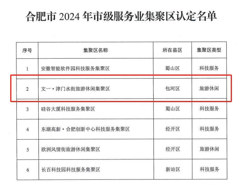 近日,经合肥市发改委严格评选与认定,文一津门水街荣耀上榜,成为2024年合肥市级服务业集聚区之一。值得一提的是,全市仅有6家园区荣获该荣誉。这不仅是对津门水街在文旅融合、文化传承与创新发展方面的高度认可,更是对文一致力于提升城市文化品位、促进区域经济发展的肯定。这标志着文一津门水街已跻身合肥市服务业发展的前沿阵地,成为推动城市文化繁荣与产业升级的重要力量。