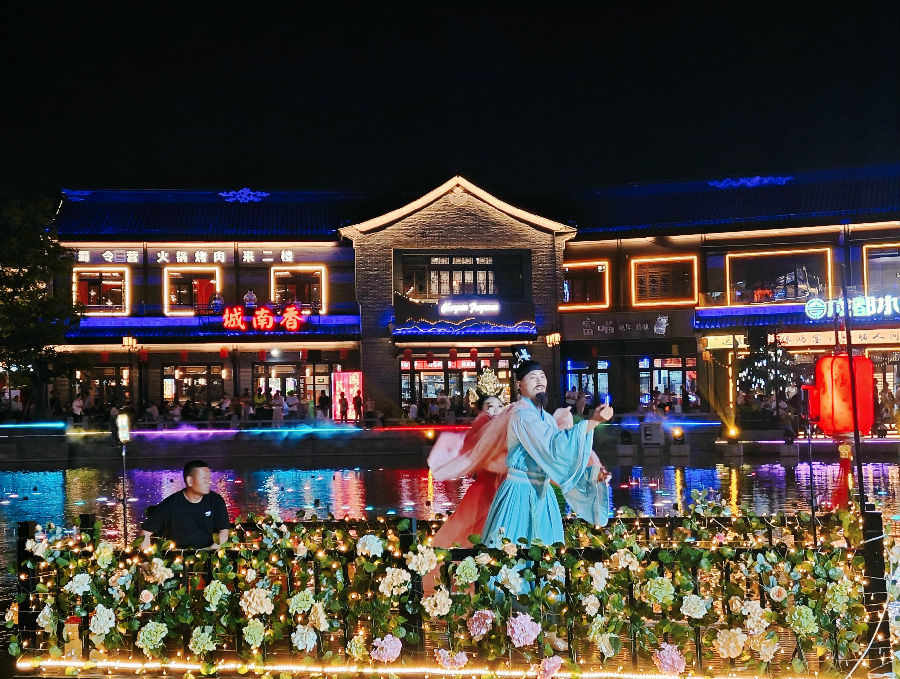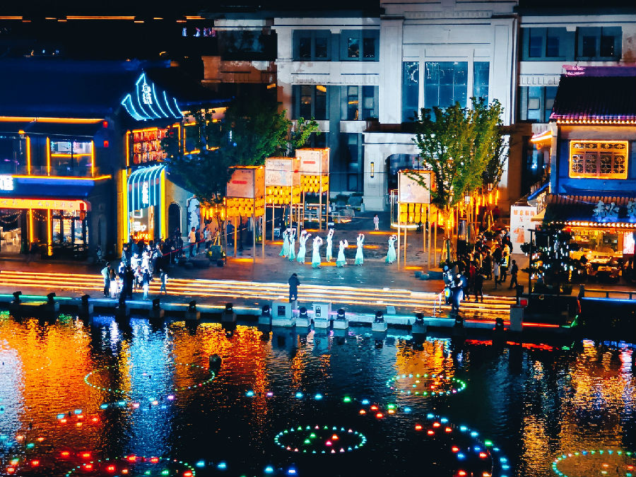 为了让游客们获得更加精彩的文旅体验,水街不断推陈出新,通过一系列特色演出和主题活动展现街区特色。不仅有集水、火、声、光、电于一体的5G科技水秀,还有各种精彩纷呈的文化演艺,包括民俗非遗演艺、月湖水上演艺、沉浸式街巷情景演艺等等。多样的演艺内容让游客们目不暇接,好评如潮。在节假日期间,水街通过不同主题的活动与演艺互动,吸引省内外游客打卡,为游客带来更难忘的旅游体验。