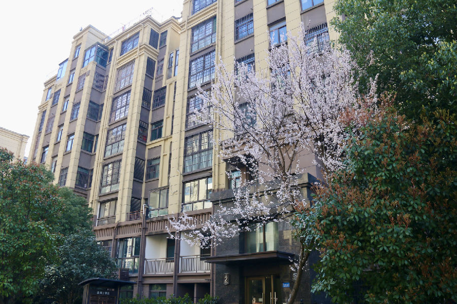 春光明媚,桃花俏枝。步入名门河畔,道路整洁,郁郁葱葱,车辆停放有序,水景静静流淌。暖阳洒在小广场上,拄着拐杖的白发老人和推着婴儿车的宝妈们三五成群地拉着家常。绿化工人蹲在路边打理花草,时不时有刚学会走路的小朋友加入其中,探索自己的世界。工作日的小区虽偶有装修和车辆的喧嚣,但到处都是有条不紊的宁静。