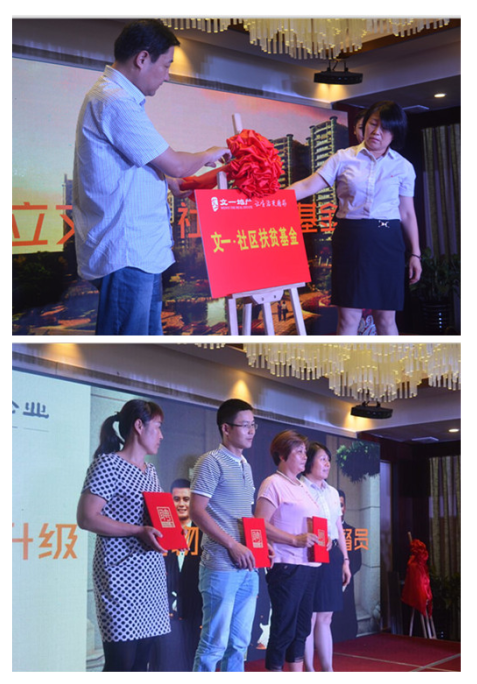 发布会上,相关领导嘉宾为首批物业服务监督员颁发荣誉证书,并为文一·社区扶贫基金进行揭牌。