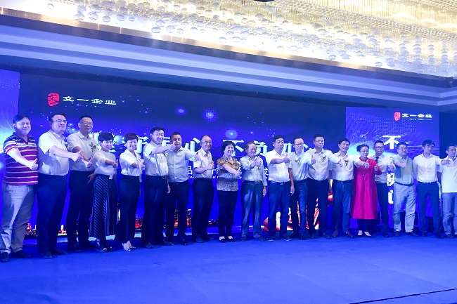 活动最后,文一集团领导登台启动品质升级再启程仪式。掌心触屏后,大屏幕上显示出“将品质升级进行到底”字样,向社会各界传达出文一创造美好未来的决心。