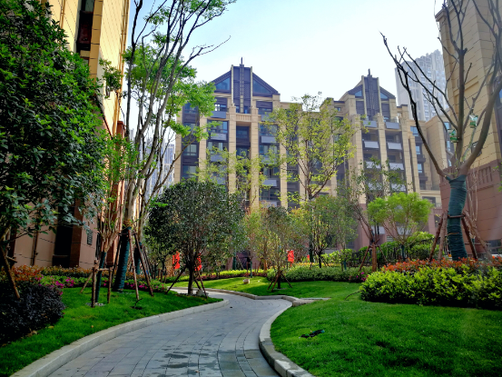 宋女士所说的花园洋房正是陶冲湖城市广场重点打造的改善型作品,一期12栋现已全部交付,每栋共计8层,内有电梯,所有楼梯及墙面均以瓷砖铺设,更显高端大气。现正在交付的属于洋房二期,总计6层,甫一推出便迅速售罄,一度成为项目热销产品。走近洋房,青草绿树掩映下,橘黄色的方砖外立面门柱让人眼前一亮,内嵌奶报箱及刷卡设备,给人以高端舒适的尊贵感受。