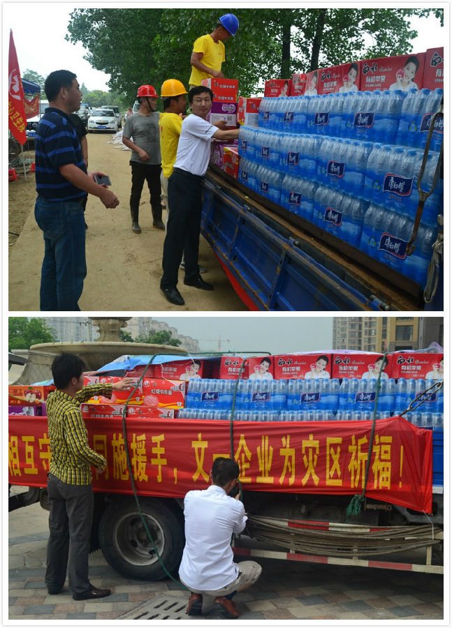 7月10日下午,文一集团肥西置业爱心赈灾分队在总经理朱家斌的带领下,满载一车救援生活物资,抵达受洪水影响严重的肥西县上派河镇,在了解当地受灾情况的同时,协助居民恢复生产生活。