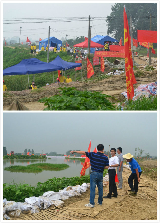 中午12点左右,赈灾小分队在肥西县翰林水岸上园将救灾物资装载完毕后,便直奔灾区一线。抵达灾区之后,爱心分队将一卡车的饮用水、方便面、医药用品等物资转交给了肥西县政府救灾管理人员,并与肥西县政府前线指挥领导一同了解查看受灾情况。从现场情况来看,区域内大面积庄家损失惨重,工作人员以及大批志愿者正在昼夜不停歇的筑强堤坝,防止新一轮的洪水侵袭。
