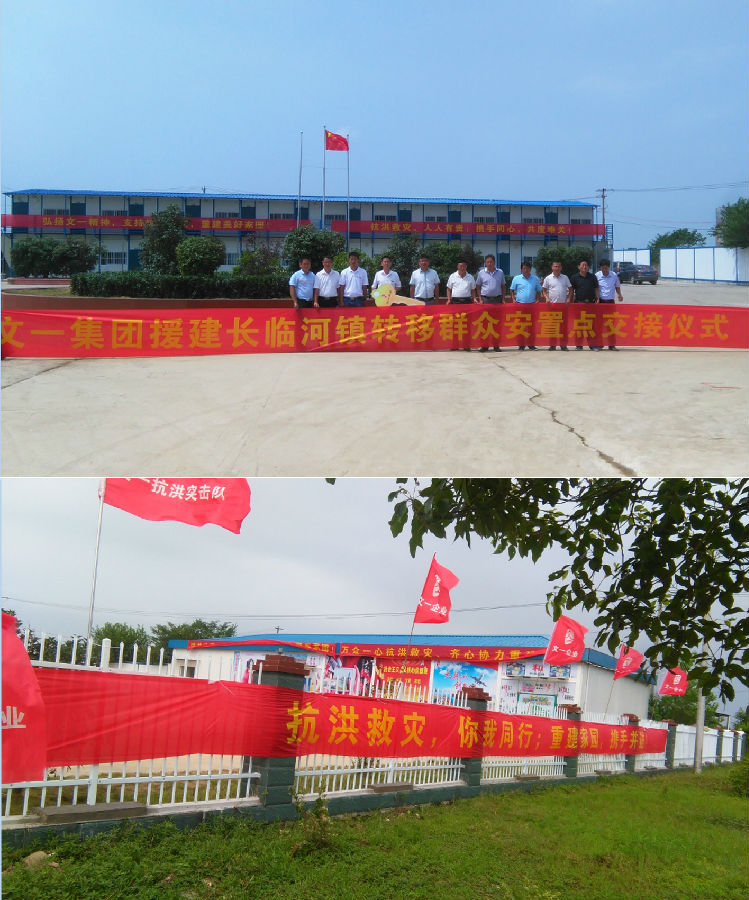 由于入夏暴雨侵袭,毗邻巢湖的肥东长临河镇受洪涝灾害影响严重,众多房屋被淹,群众家园被毁。7月8日,文一集团集团董事长周文育亲临长临河镇受灾区域,现场筹划布局,给文一建工下达援建500人转移群众安置点的任务,要求务必在最短的时间内完成,确保受灾转移群众尽快入住安置点。