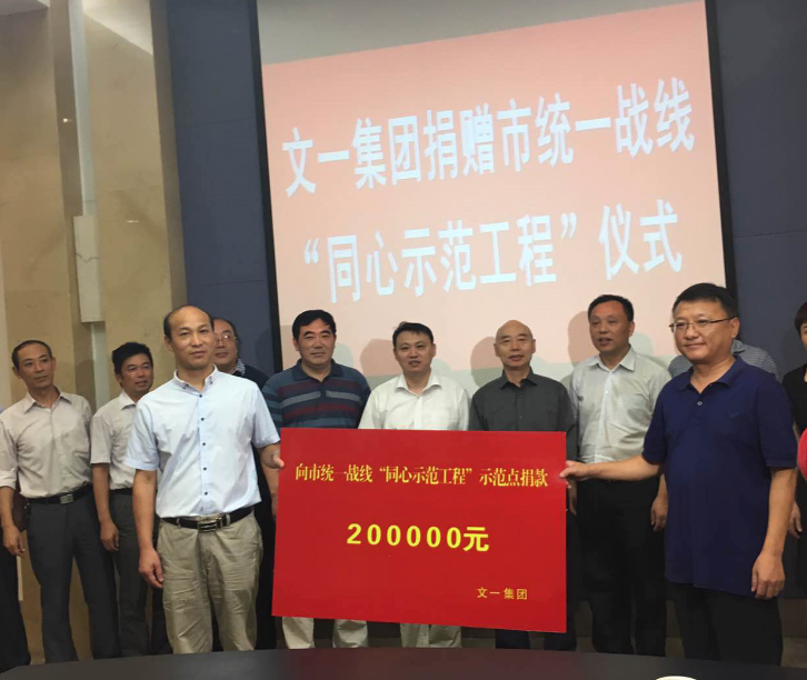 9月21日下午,文一集团捐赠市统一战线“同心示范工程”仪式在市政务中心举行。仪式上,文一集团向“同心示范工程”示范点——肥东县八斗镇陆还村捐赠扶贫资金20万元。
