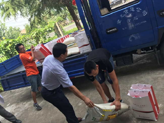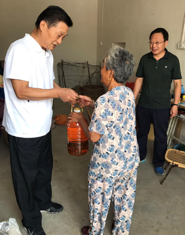 7月16日,集团党委书记兼纪委书记韦存华带领集团党群办一行,在肥东县工商联负责同志的陪同下,冒着高温酷暑,前往肥东县梁园镇护城社区,看望慰问20户贫困户,为每户送去500元慰问金及大米、食用油、日用品等物资。