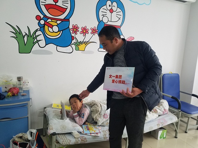 小城城的病情经安徽电视台公共频道报道后,受到很多爱心人士关注,纷纷为其捐款捐物。文一集团得知后随即赶往医院,为小城城送去慰问金,详情见安徽电视台公共频道报道。(视频链接:http://v.qq.com/x/page/w0511ii8y7o.html)