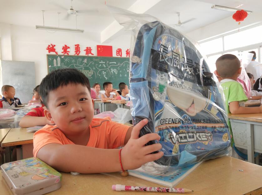 走进一年级的教室,热烈的掌声便充斥了整间教室。孩子们整整齐齐坐在座位上,工作人员将手中的书包逐个发放到每位小学生手中。拿到做工精美的书包,孩子们乐开了花。