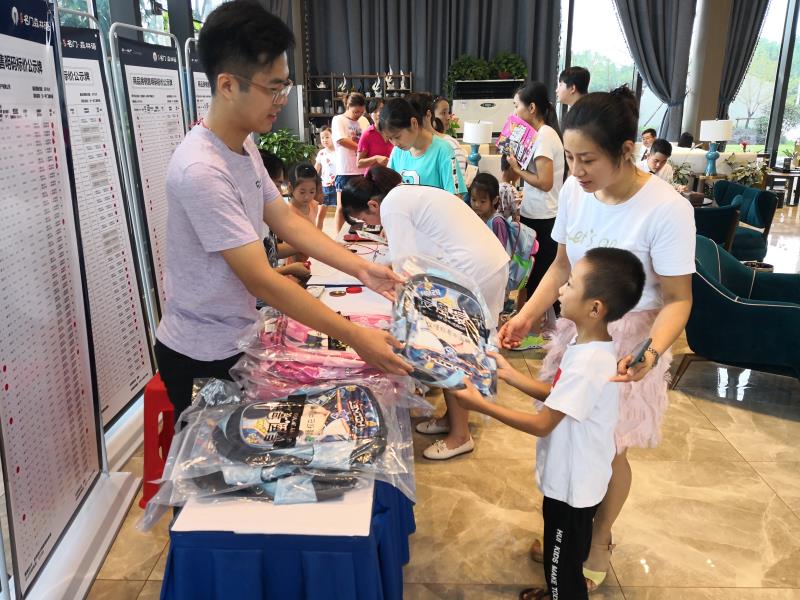 本次公益送书包活动,不仅走进校园派发书包,更进行了1000份书包券的大派送,凡领到书包券的家长,即可于9月8日-9月9日(上午9:00-11:30,下午14:30-16:30)前往文一·名门金隅营销中心兑换精美书包。