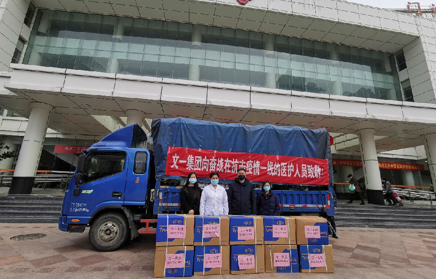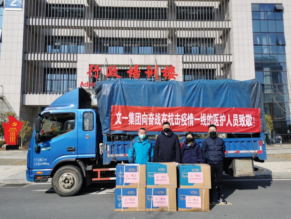 2月1日,文一集团首批捐赠20万元善款至合肥市滨湖医院。2月7日,第二批次物资——60500个防护口罩和565套医用防护服捐赠至肥东县人民医院。2月11日,集团第三批次2000余套医用防护服捐赠送达安徽医科大学第一附属医院医护人员手中。