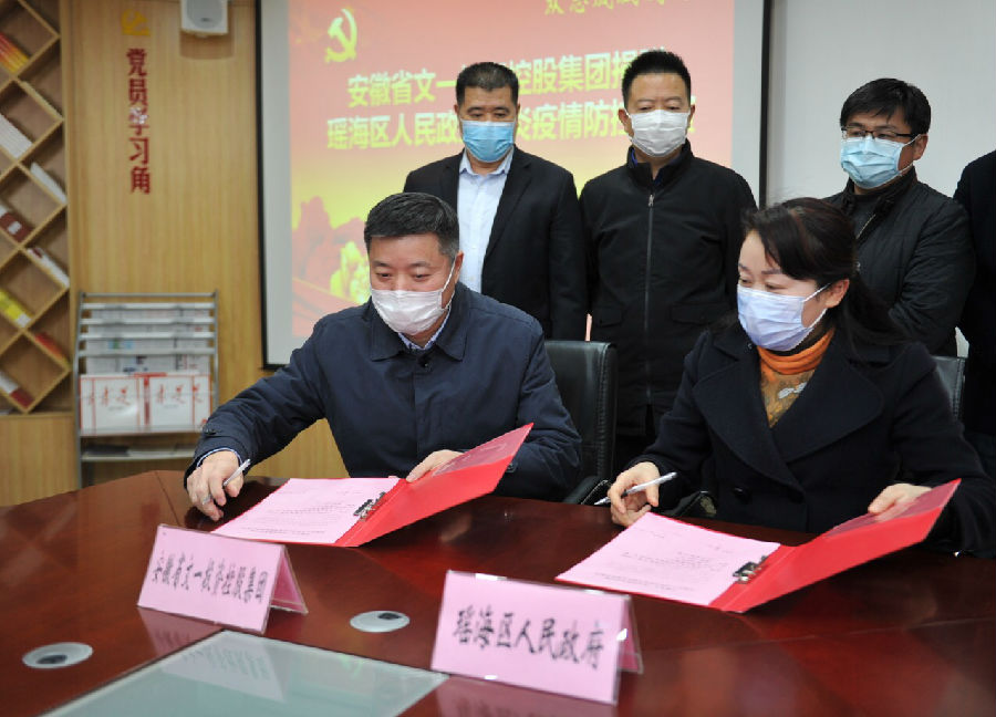 3月5日下午,在瑶海区政府举行的防控物资捐赠交接仪式上,文一集团将募捐所得17.6295万元善款(其中党员捐款4.907万元上缴属地党组织)以及20000只医用防护口罩、1000斤消毒酒精、20箱84消毒液,悉数捐至瑶海区政府,为支援一线防疫持续贡献力量。