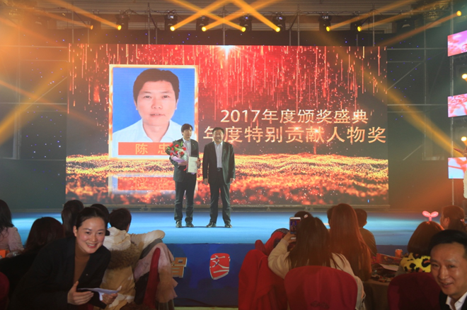(集团副董事长周文为集团副总裁陈忠颁发2017年度特别贡献人物奖)