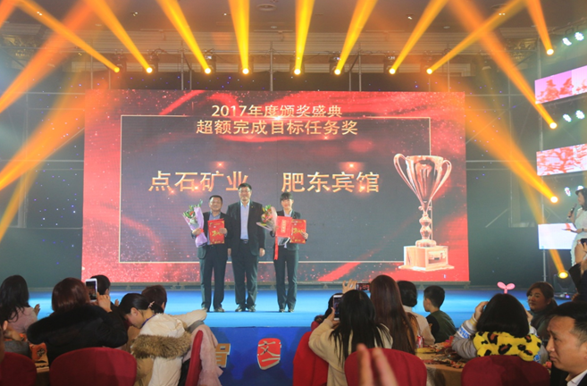 (集团副董事长韦勇为点石矿业、肥东宾馆颁发2017年度超额完成目标任务奖)