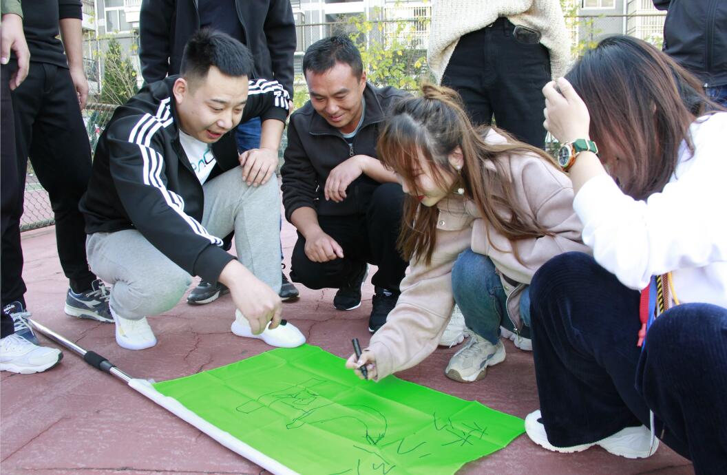 11月23日下午,全体员工在教官的带领下首先开展了一场别开生面的拓展培训活动。经过简单分组,“青龙队”、“争先队”、“战狼队”、“梦之队”四支队伍诞生。每支队伍要求在短时间内,创作队旗、口号,排练队歌,考验着成员们的团体协作和实时应变能力。