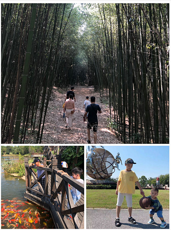 而在巢湖明珠的长临河镇上,文一白马山国家篮球公园更受员工的青睐。从布莱顿酒店出发,路过莲池叠瀑,一路走到半山文化广场,与篮球雕塑和文化景墙合影后,或在半山腰俯瞰整个长临河镇初秋的美景;或拾级而上,登上白马山顶,远眺整个环巢湖的别样景色。沿着幽静的竹林往下走,到达亲水观鱼,撒下一把鱼食,数不清的锦鲤蜂拥而至。在白马山还有一片五彩菜地,各种时令蔬菜长势喜人,向大家展示着农耕面貌,温馨的家庭时光、欢乐的笑声荡漾在白马山的绿水青山间。