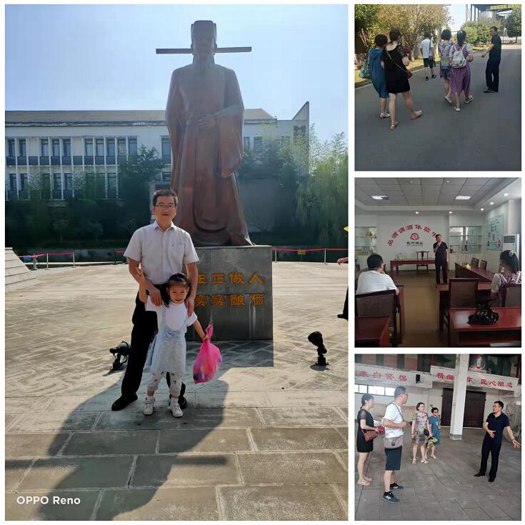 而在肥东县的梁园镇,皖中第一酒厂的包河酒厂,也迎来了几组员工家庭的参观。一进门,就是一个将近5米高的包公像,大家在雕像前瞻仰古人并合影。走过莲花池,登上清风塔,穿过小浮庄,在酿造基地观察白酒酿造过程,洞藏区域的大酒坛子让来访者尤其是小朋友感觉格外的新奇。最终品尝到甘冽醉人的包河酒,不由得竖起大拇指,赞叹道:不愧是“肥东小茅台”。在酒博物馆,从白酒文化起源到白酒酿造,无一不让大家赞叹。