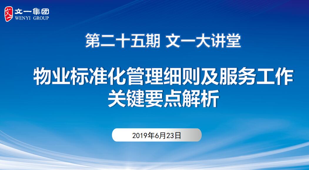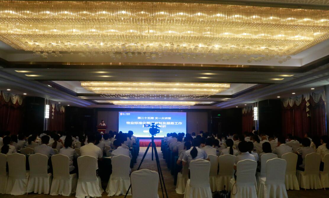 为加强物业团队管理,全面打造专业高素质的物业服务队伍,切实提升物业服务品质,6月23日,文一大讲堂第二十五期《物业标准化管理细则及服务工作关键要点解析》在戴斯大饭店举办。文一物业总经理赵虹、滨江物业总经理张华担任本期主讲人,控股集团、房地产集团相关高管及客服中心、文一物业、滨江物业相关人员共计百余人参加。大讲堂由控股集团副总裁薛英姿主持。