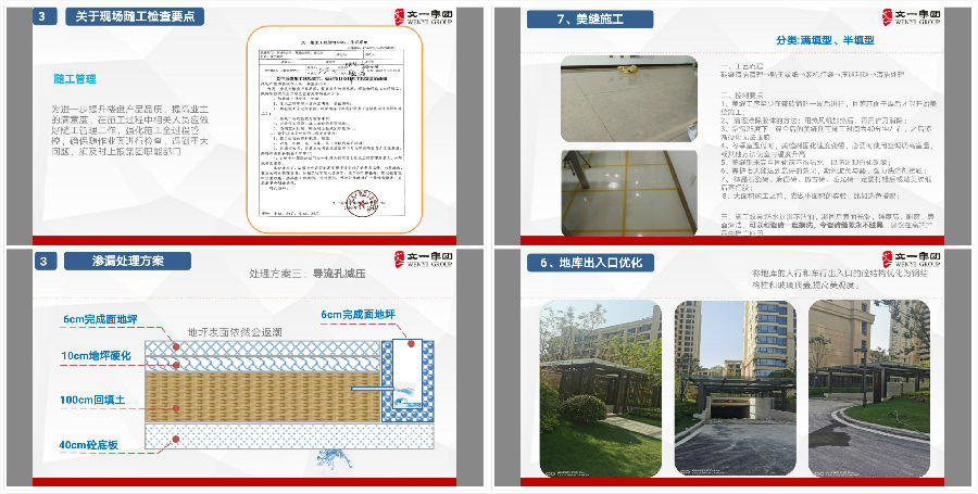以史为鉴,可知兴替;以人为鉴,可明得失。工程质量无小事,过硬的产品品质和服务是企业立足根本,没有品质就没有品牌,没有服务就没有市场,更无法谈业绩谈发展。文一始终以品质化趋势为向导,以业主满意度为准绳,心系业主千万家,心怀行业大未来,一以贯之推进标准化建设,强化工程品质,与时俱进树立行业品牌。未来,文一将始终如一地把业主利益摆在首位,脚踏实地推进工程改革,精益求精提升品质,为提高业主居住的幸福感和满意度而不懈努力,为文一的长远发展夯基筑台。