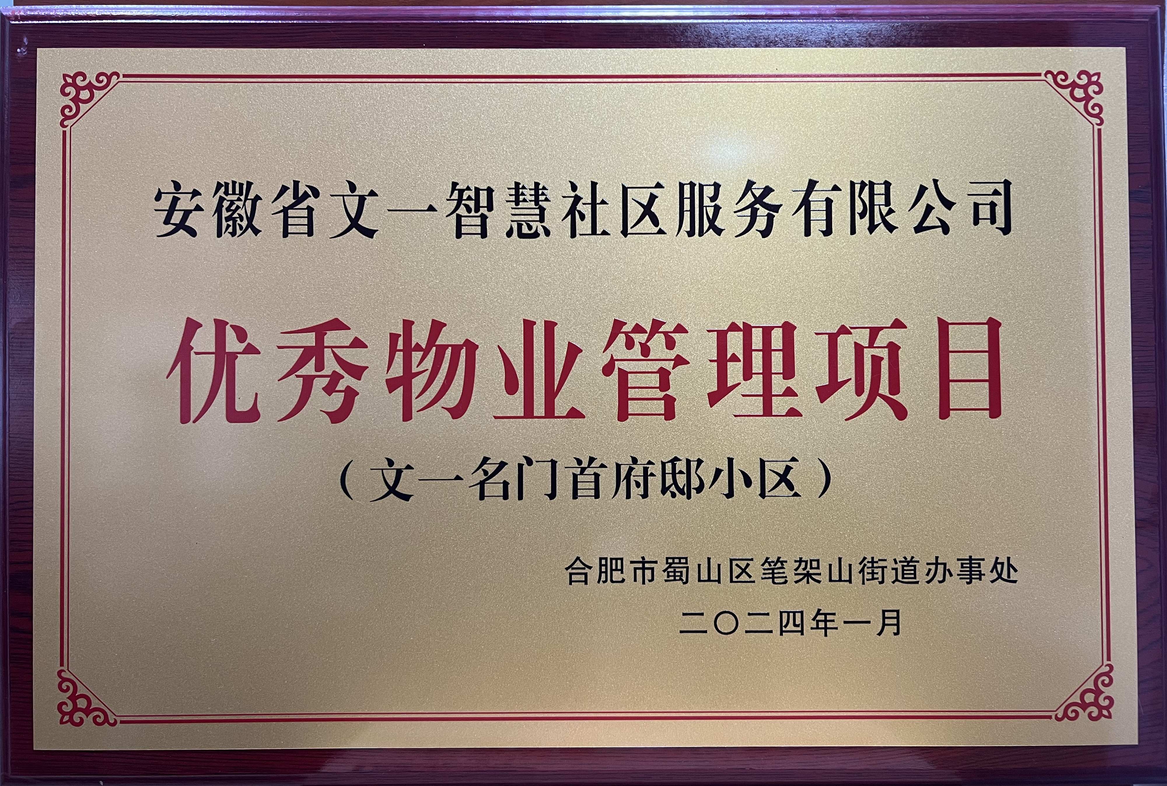 2月1日上午,合肥市蜀山区笔架山街道党工委、办事处组织开展2023年度物业管理工作总结表彰大会。文一·名门首府(备案名:名门首府邸)获评优秀物业管理项目。