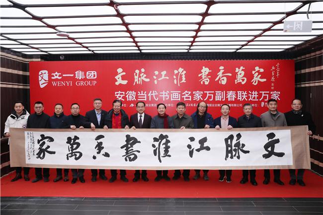 妙笔生花送祥瑞,翰墨留香迎新春。1月21日下午,合肥滨湖文一津门水街一片热闹喜庆气氛,大大的福字、火红的春联满载着新春的祝福铺展开来。下午三时,由安徽日报报业集团主办,安徽报业全媒文化传播有限公司、安徽日报书画院承办,文一集团总冠名的“文脉江淮书香万