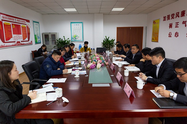 12月14日上午,合肥市瑶海区委常委、副区长余疆带领区财政局副局长陈进、区住建局主任科员黄宪兵,龙岗开发区党工委委员李霞、开发区财政局局长陈亮等一行人莅临文一建工集团调研指导工作,建工集团总裁童乃兵、副总裁陈明章、财务经理郑七林、文一建安公司副总经理