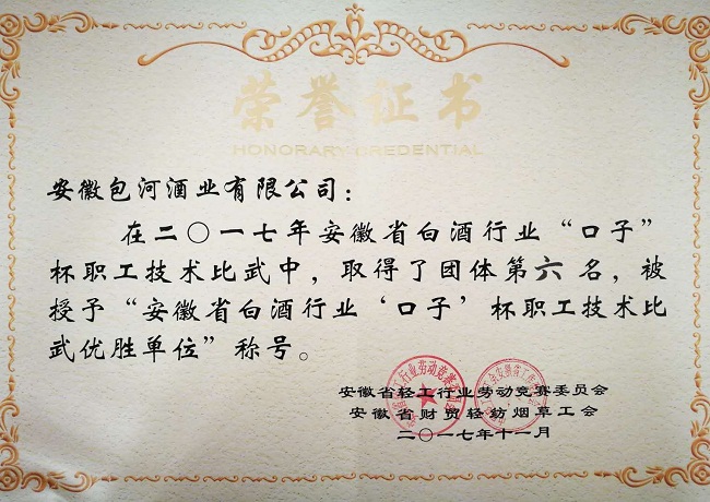 近日,包河酒业组织代表队参加由安徽省财贸轻纺烟草工会和安徽省轻工行业劳动竞赛委员会组织的“安徽省白酒行业职工技术比武”大赛.