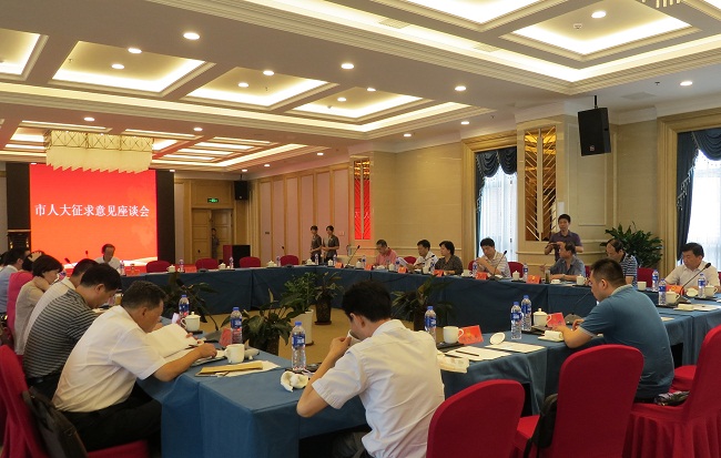 7月14日上午,合肥市人大常委会委员、人选工委主任郭苏梅,市人大常委会人选工委副主任丁书文,市人大常委会代表联络办副主任周祖挺及合肥各县市区人大常委会相关负责人一行莅临肥东县举行市人大征求意见座谈会,会议在文一·白马山国家篮球公园布莱顿酒店召开。