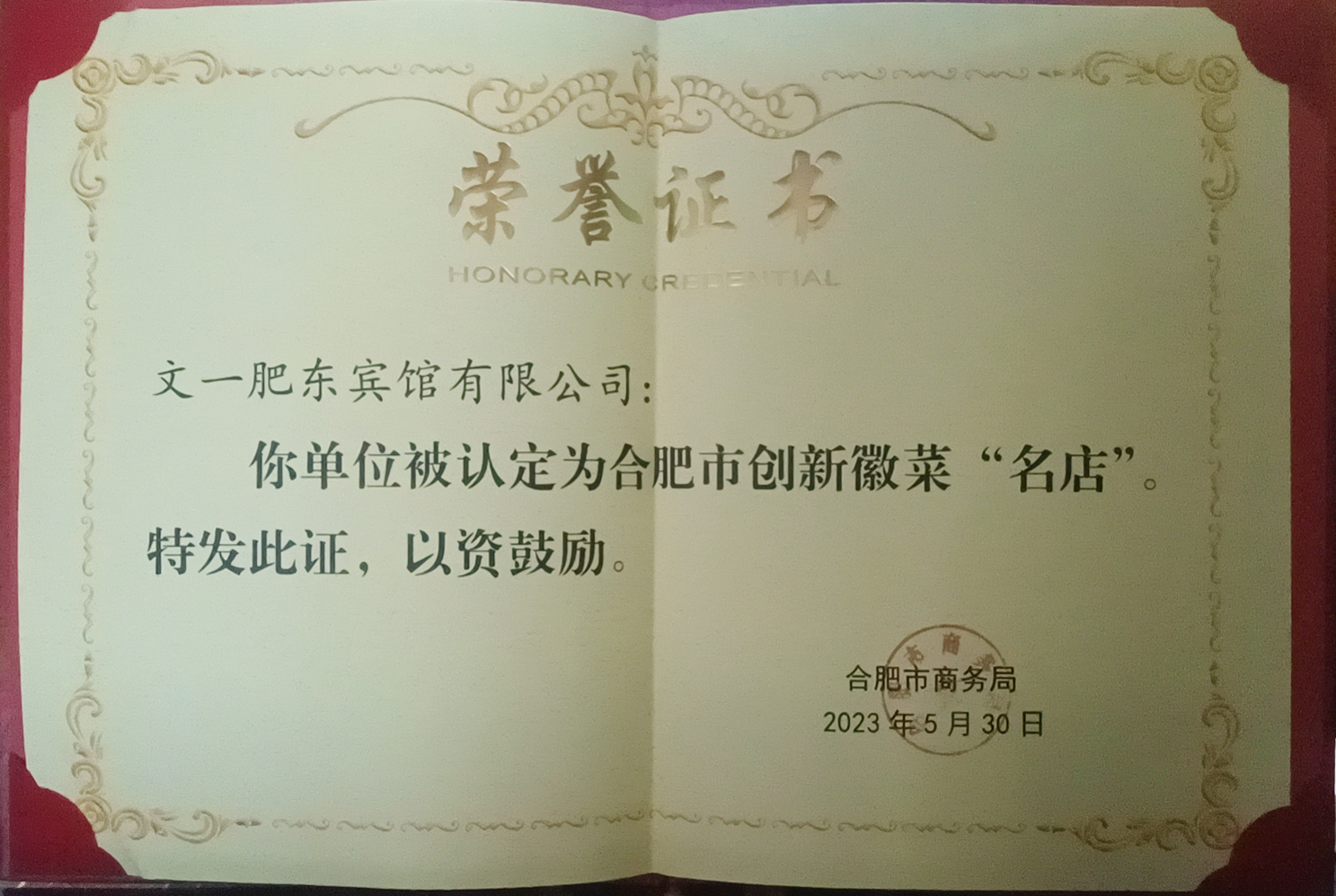在第一届合肥市创新徽菜“名厨、名菜、名店”的评定中,一品宴肥东宾馆作为肥东县创新徽菜的代表之一,荣膺合肥市创新徽菜“名店”。