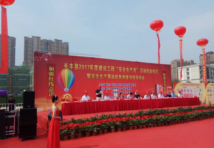 6月15日上午,长丰县2017年“安全生产月”启动仪式暨消防应急演练在文一·锦门北韵项目施工现场拉开帷幕。