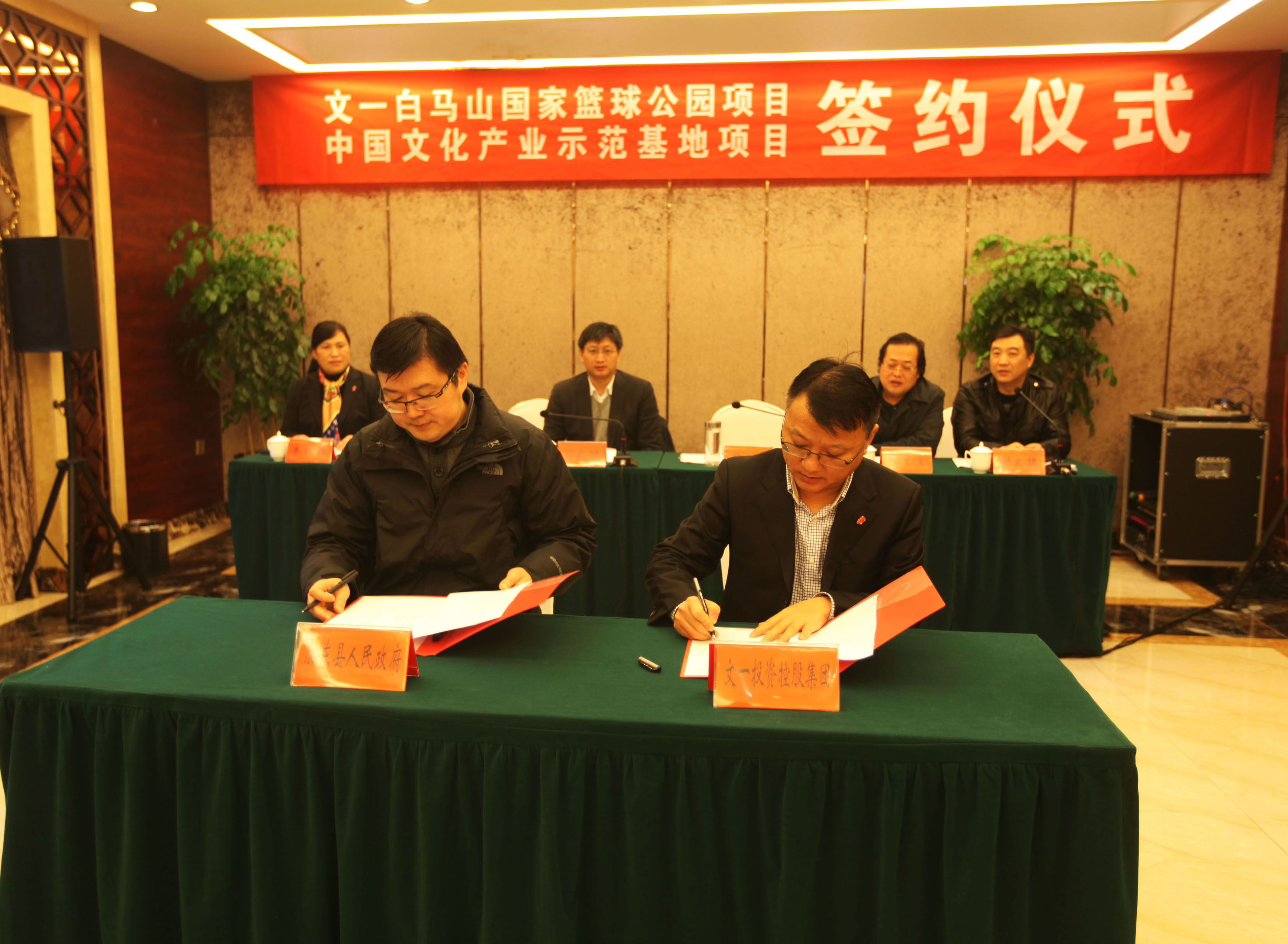 2015年12月25日,文一·白马山国家篮球公园项目暨中国文化产业示范基地签约仪式在一品宴·肥东宾馆成功举行,肥东县县委副书记、县长孙良鸿、副县长张骏,县发改委、规划局、财政局等相关部门,文一集团董事长周文育、副总裁兼党委副书记朱红敏等出席签约仪式。