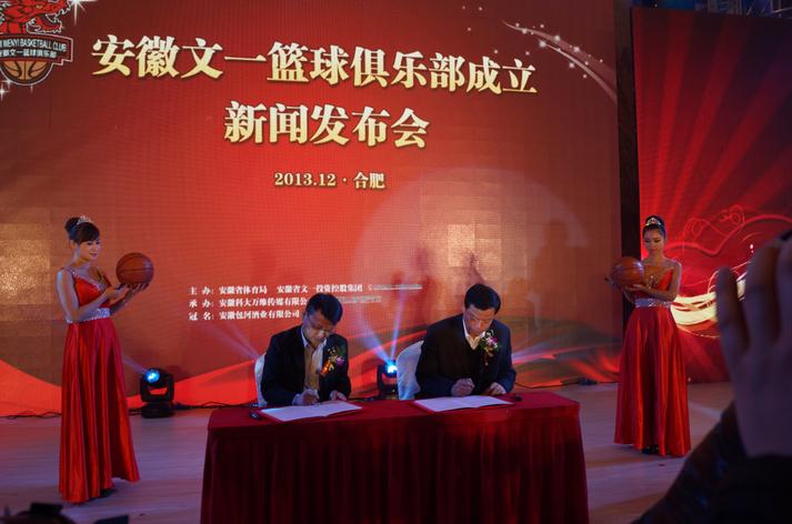 12月9日下午,安徽文一职业篮球俱乐部新闻发布会在威斯汀酒店举行,安徽目前唯一的职业篮球俱乐部正式宣告成立。目前俱乐部已获得了NBL(全国男子篮球联赛)联赛2014赛季的参赛资格,并将代表安徽省参加2017年第十三届全运会比赛。