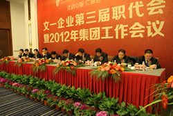玉兔回宫传捷报,金龙奋舞庆新春。在这辞旧迎新的时节,安徽省文一投资控股集团第三届职代会暨2012年集团工作会议于元月15日—17日在风景秀丽的九华山脚下圆满举行。大会凝聚了集团各级领导、组委会的智慧和汗水,是全体文一人对2011年丰富经验的传承和20