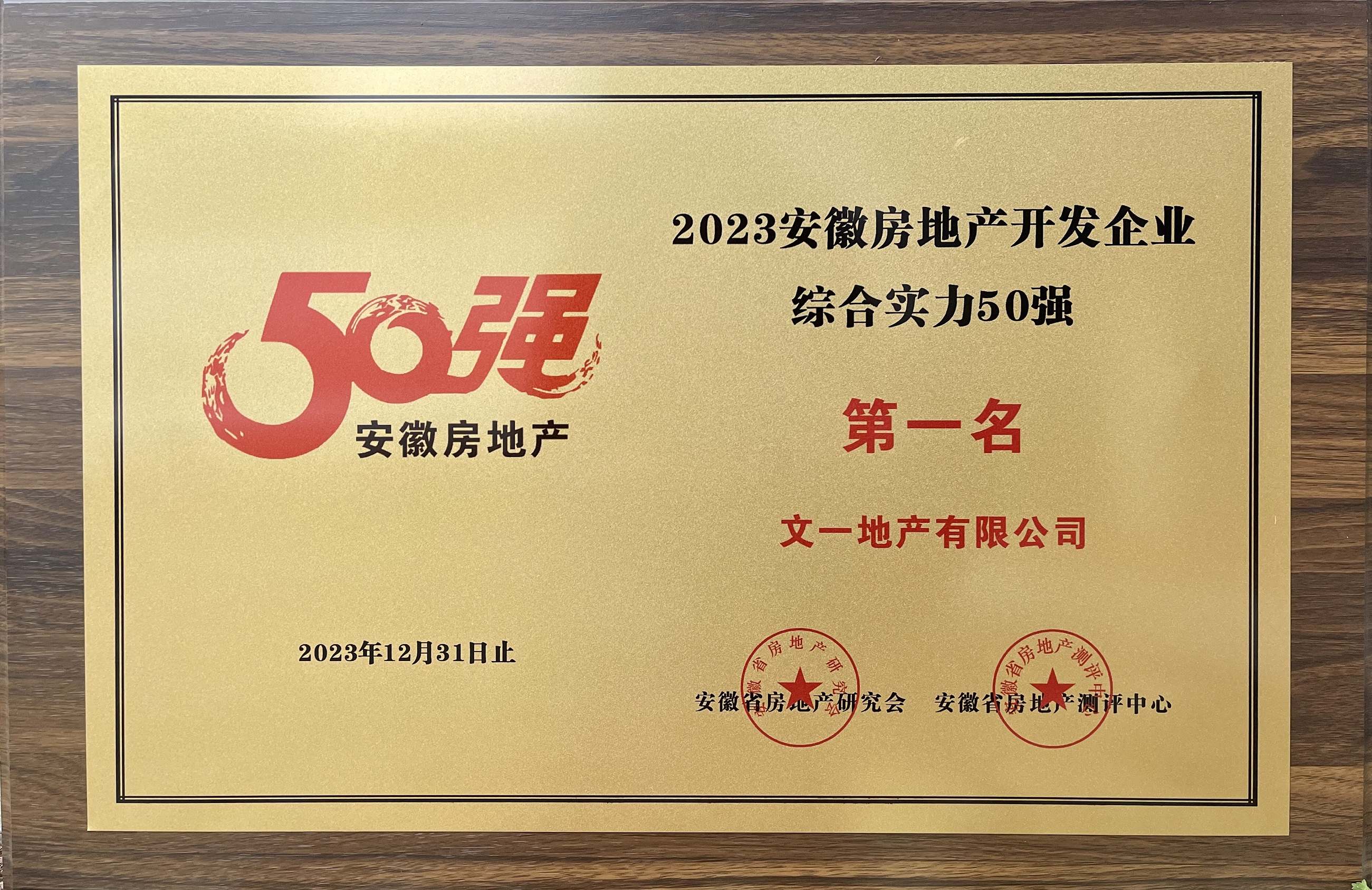 2月22日,“2023安徽省房地产行业综合实力50强暨第八届金鼎奖榜单发布会”在合肥隆重举行。文一地产荣登2023安徽房地产开发企业综合实力50强榜首,安徽省文一智慧社区服务有限公司荣登2023安徽物业服务企业综合实力10强第9位,文一·塘溪津门荣膺