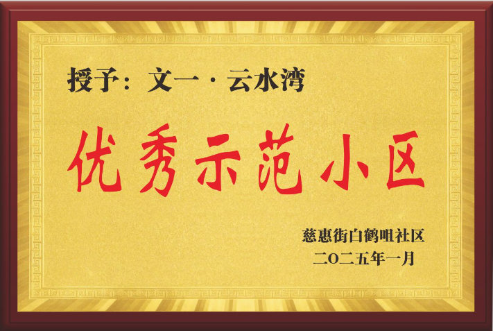 年终岁末,文一滨湖服务下辖武汉云水湾项目在2024年物业服务工作中捷报频传。1月15日,武汉东西湖区慈惠街道白鹤咀社区授予云水湾项目2024年度“优秀示范小区”和“文明安居小区”称号,物业服务工作获得上级主管部门的高度认可。