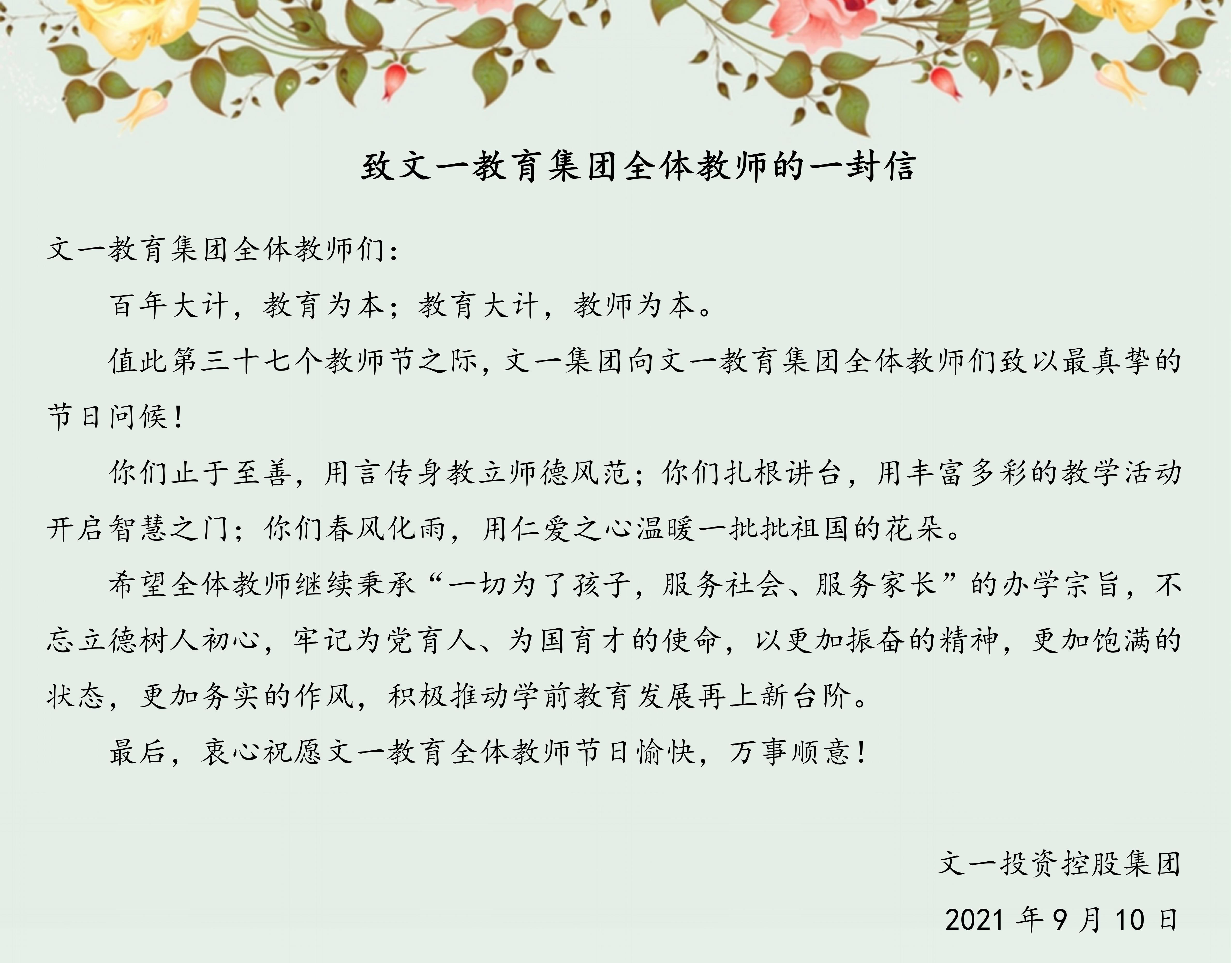 9月10日,在第37个教师节到来之际,文一教育“树师德 铸师魂——十年芳华满桑梓”大型主题演讲比赛活动在文一戴斯大饭店隆重举行。