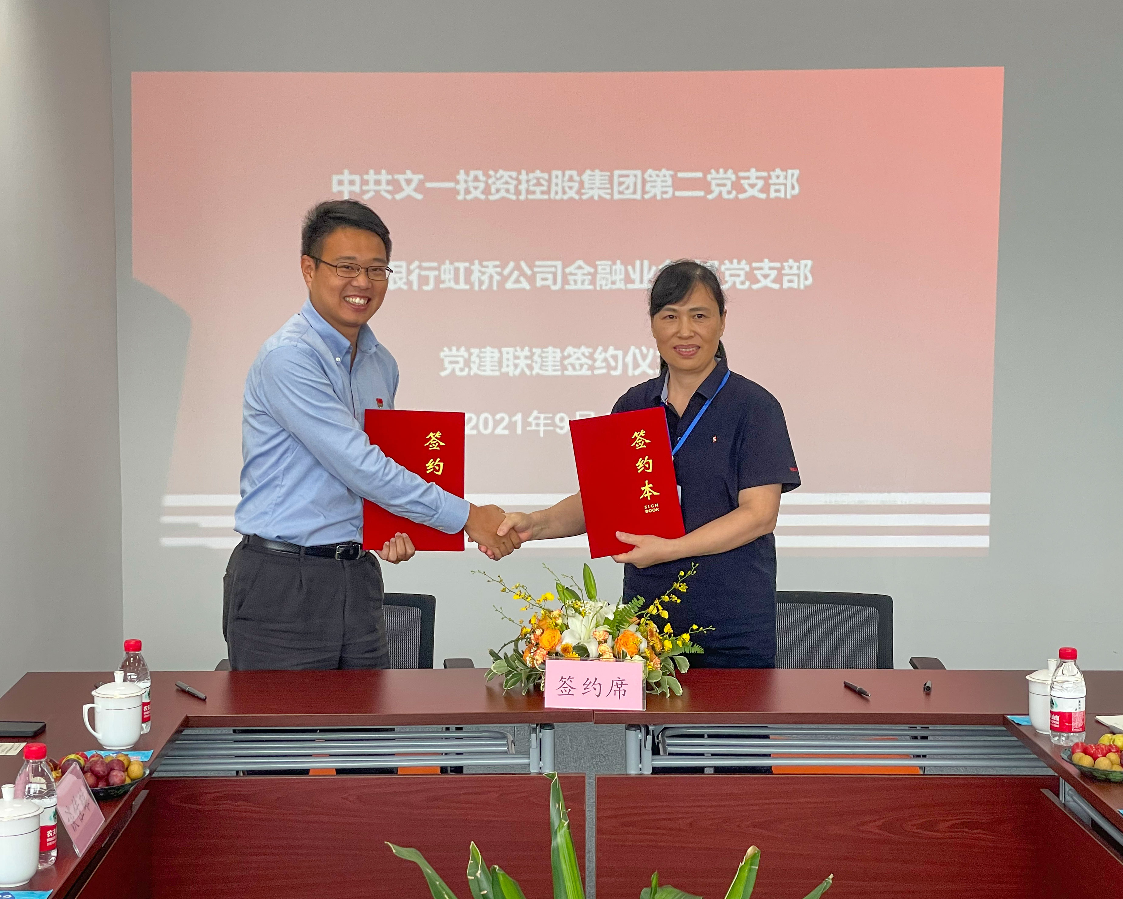 9月15日上午,工商银行上海虹桥支行公司金融业务部党支部一行,走进文一投资控股集团总部(上海)管理办公室,就达党建联建工作展开深入交流,文一集团第二党支部与虹桥支行公司金融业务部党支部签署了党建联建协议书。