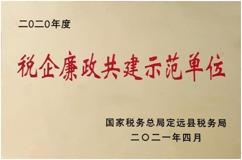 4月27日下午,2020年定远县税企廉政共建总结暨2021年共建活动启动会议在定远县税务局八楼会议室召开,文一点石矿业获得2020年度定远县税企廉政共建示范单位称号,连续两年获此殊荣。