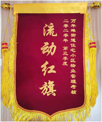 12月8日,文一滨江物业所辖文一·塘溪津门物业获得2020年云华社区万年埠街道第三季度流动红旗评比第一名,并现场接受万年埠街道领导颁发的“流动红旗”。